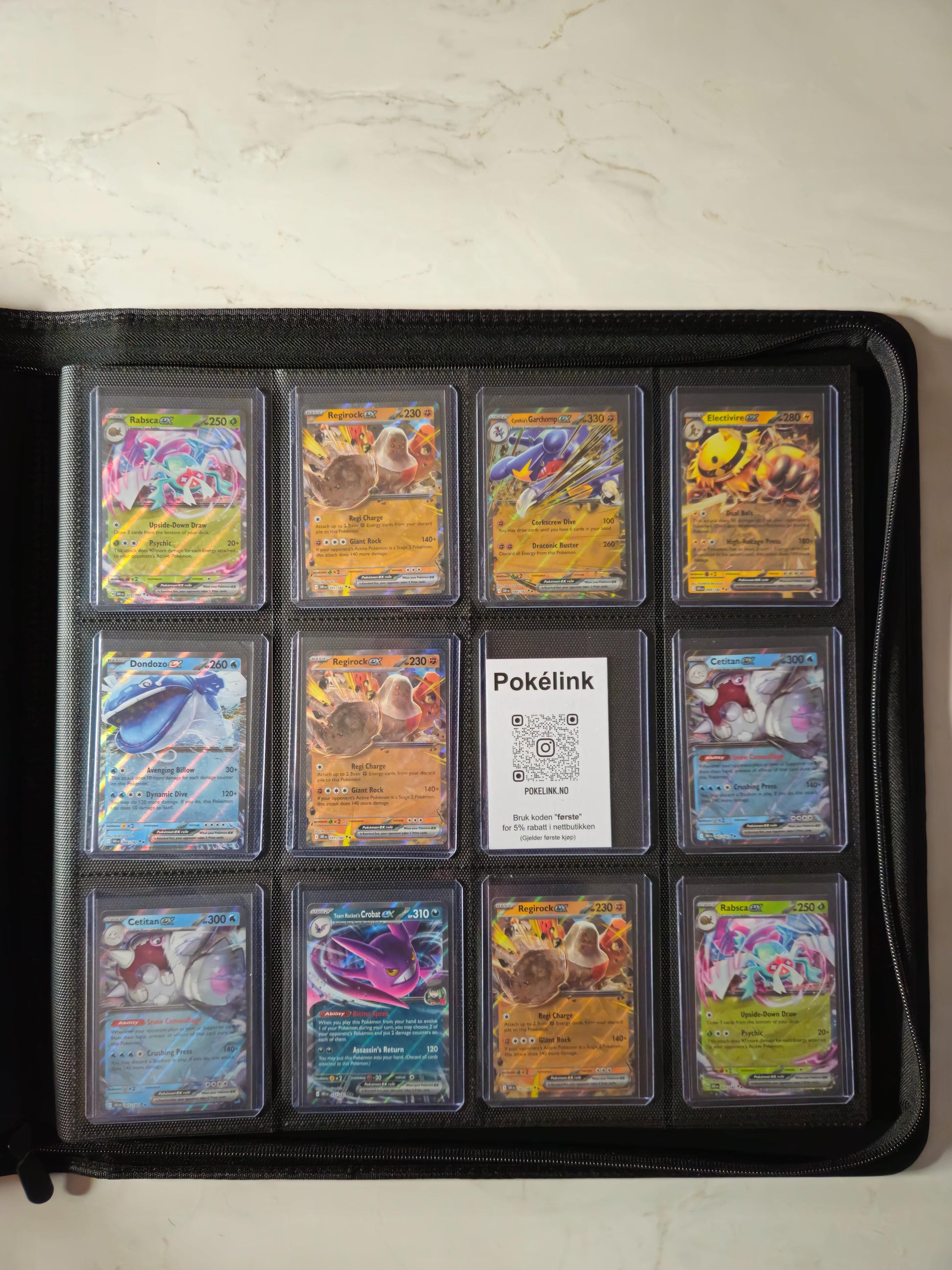 Permen rommer 20 sider med 24 sidelommer hver for en total kapasitet på 480 kort. En slitesterk glidelås lukker denne permen fra alle kanter.
